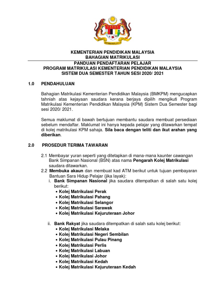 Panduan Borang Perjanjian Dan Dokumen Pelajar Pendaftaran Matrikulasi Sesi 2020 2021 Flip Ebook Pages 1 23 Anyflip